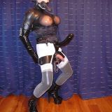 Ich bin ein teilrasierter Fetisch-Transvestit (Lack, Latex, Lingerie, Mieder, Nylons, schenkelhohe Plateaustiefel, schwere Silikonbrüste im durchsichtigen BH (100 G) oder freiliegend, Korsett, Strapse, Perücke und nuttige Schminke oder Masken, Knebel, Umschnalldildos, Analstöpsel, Rekrutengürtel, Sack- und Schwanzringe, Sackfallschirm, Spermabremse usw.).